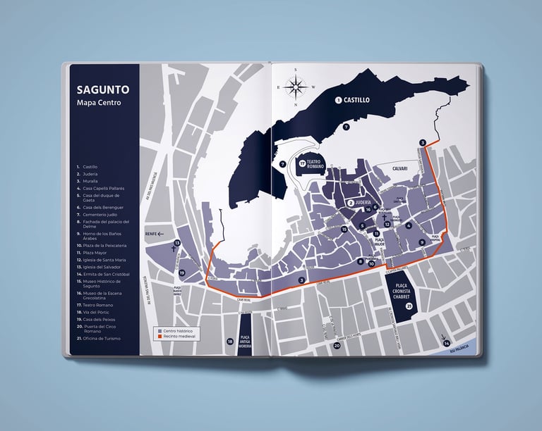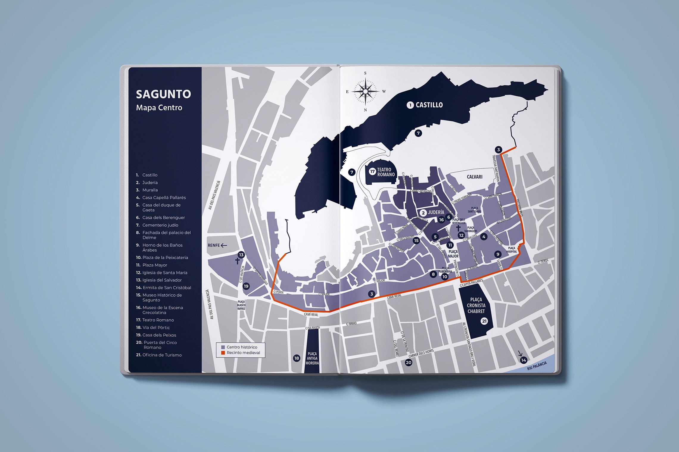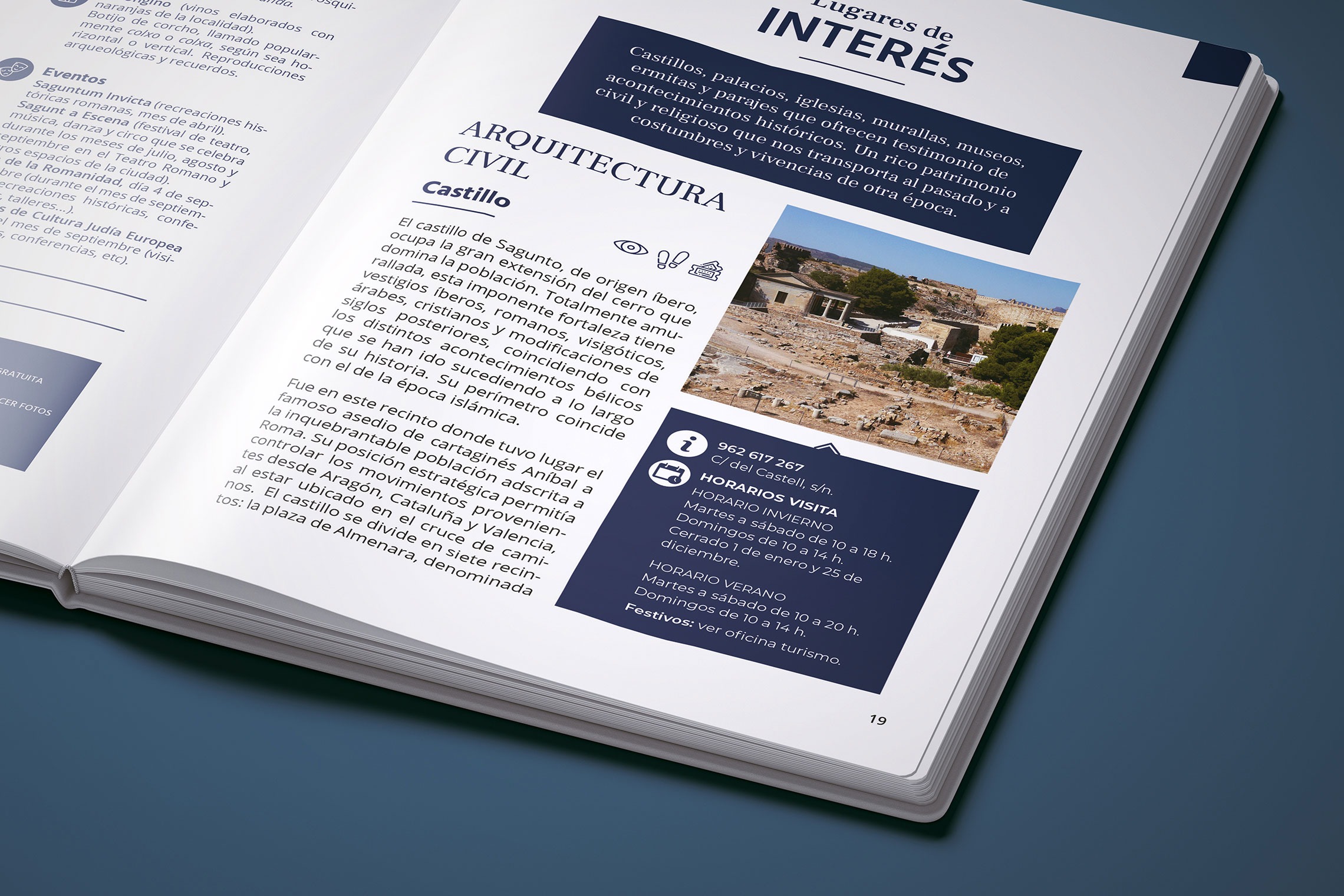 Diseño editorial de la guía turística: SAGUNTO. Viaje a la época medieval. Una guía imprescindible para conocer la historia de Sagunto por donde Jaume I ha dejado su huella.