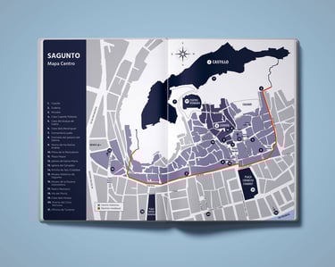 Diseño editorial de la guía turística: SAGUNTO. Viaje a la época medieval. Una guía imprescindible para conocer la historia de Sagunto por donde Jaume I ha dejado