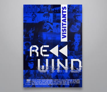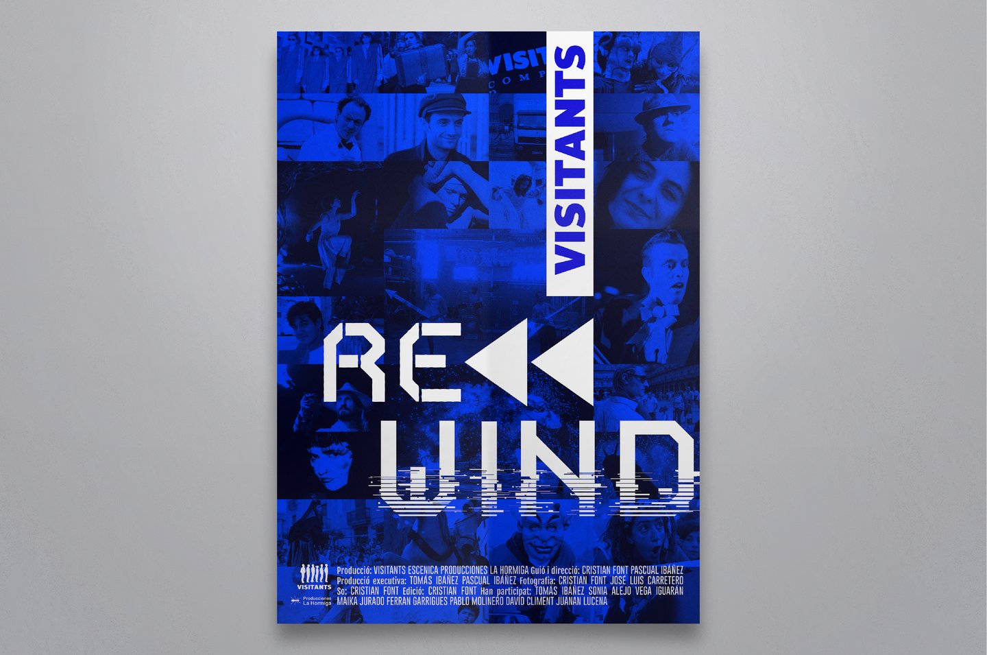 Diseño de cartel para la proyección del documental “Rewind” conmemorativo de los 30 años de la compañia de teatro Visitants.